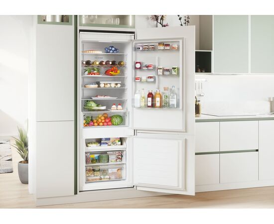 KBR 19734 NF oferuje wyjątkową funkcjonalność i niskie zużycie energii. Elektroniczny panel sterowania ze wskaźnikiem temperatury ułatwia obsługę, a możliwość montażu drzwi po lewej lub prawej stronie pozwala na dopasowanie do każdej kuchni.
