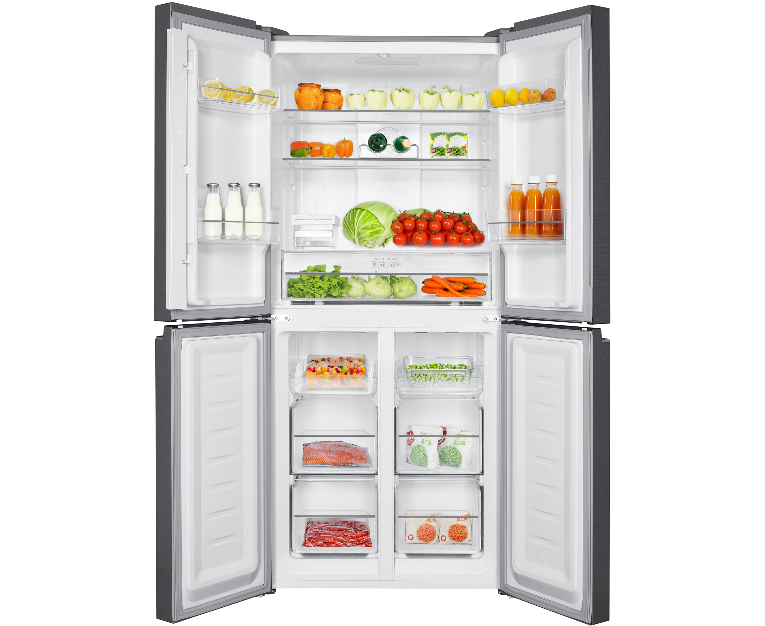 Oświetlenie LED poprawia widoczność wewnątrz, a funkcje szybkiego chłodzenia i mrożenia pomagają szybciej schłodzić świeże zakupy. Elektroniczne sterowanie pozwala precyzyjnie dobrać temperaturę w komorach.