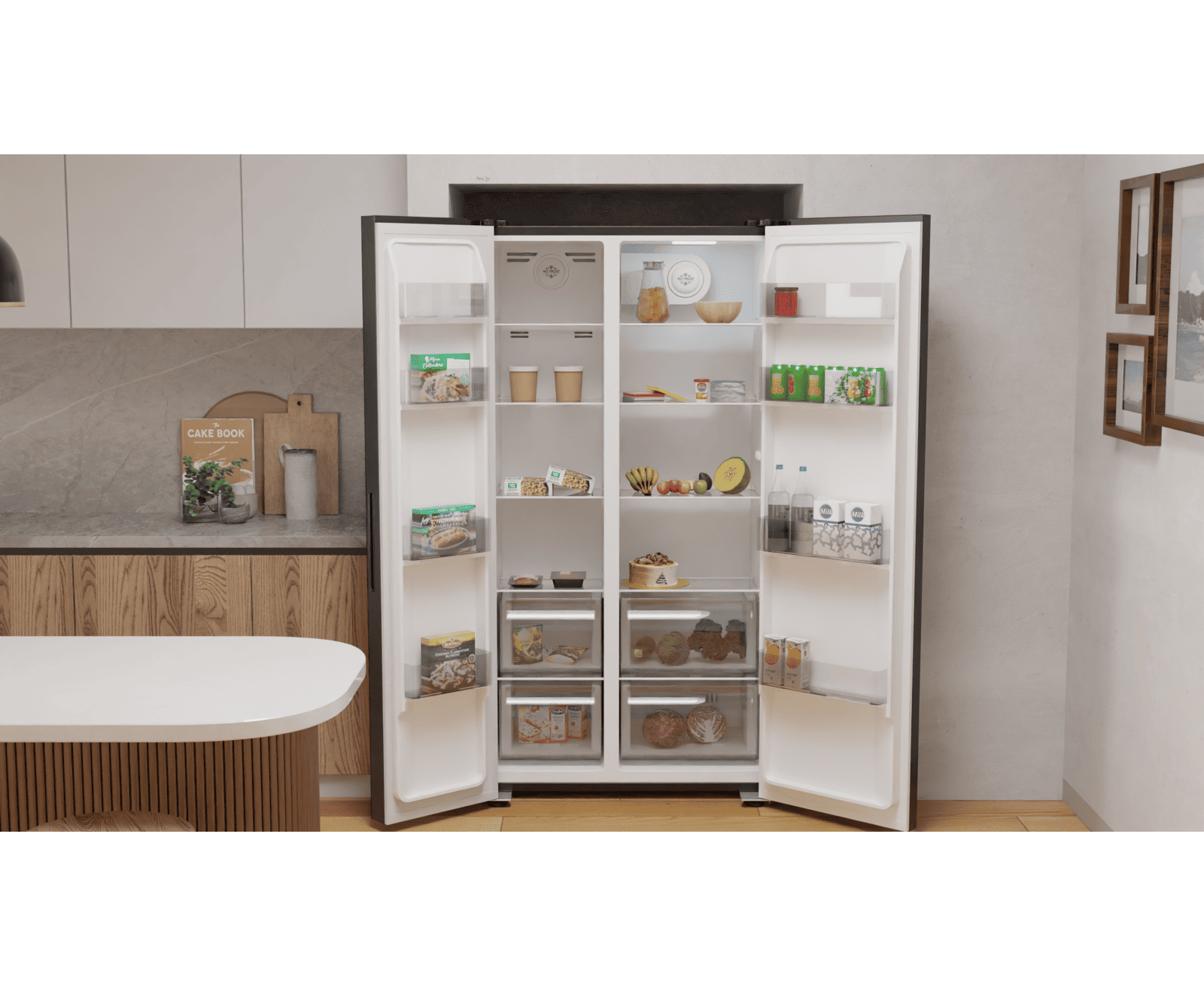 Chłodziarko‑zamrażarka KERNAU KFSB 1794 BG zapewnia wygodne przechowywanie zapasów i stabilne warunki chłodzenia dzięki nowoczesnym systemom cyrkulacji powietrza. Przemyślany podział półek i szuflad ułatwia organizację produktów.