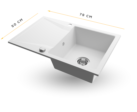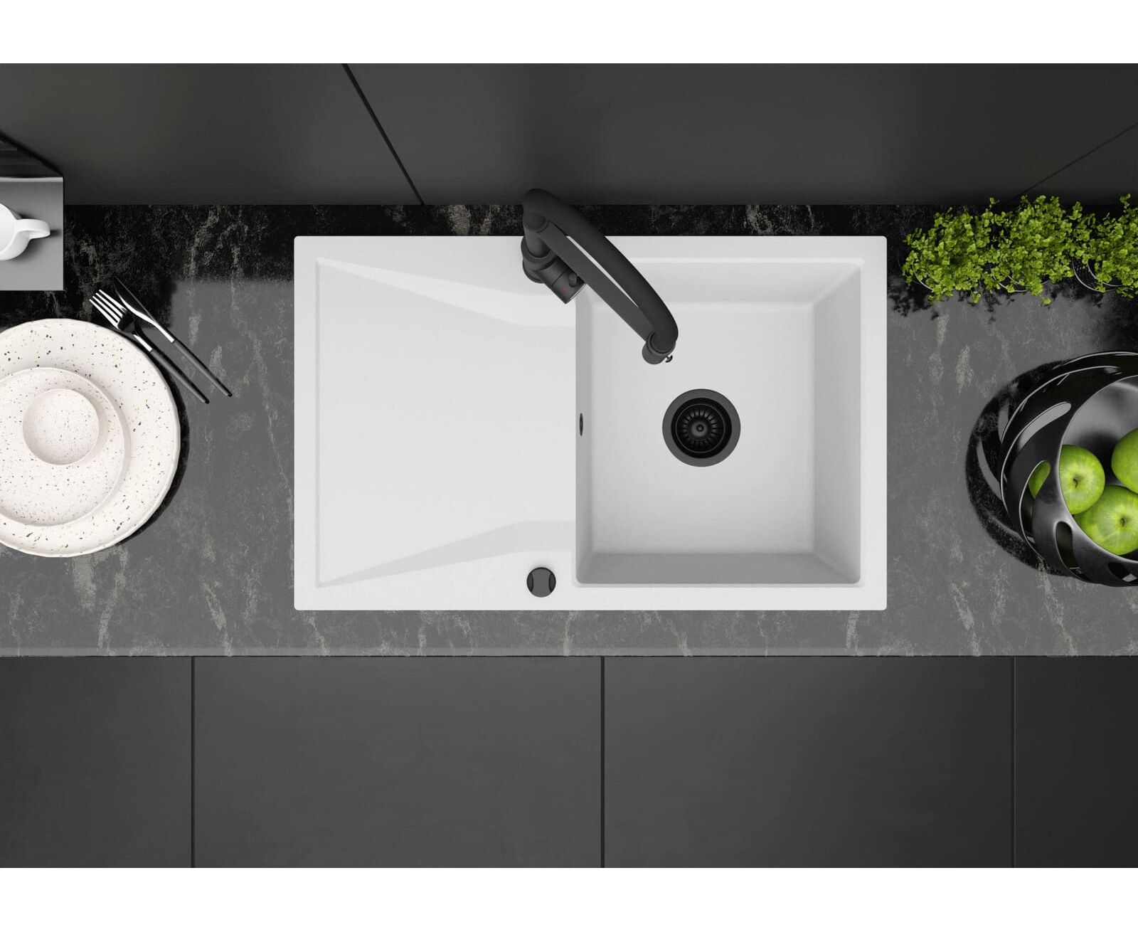 KERNAU KGS J 5079 1B1D Pure White - Zlewozmywak granitowy 1 komorowy z ociekaczem, korek automatyczny.
