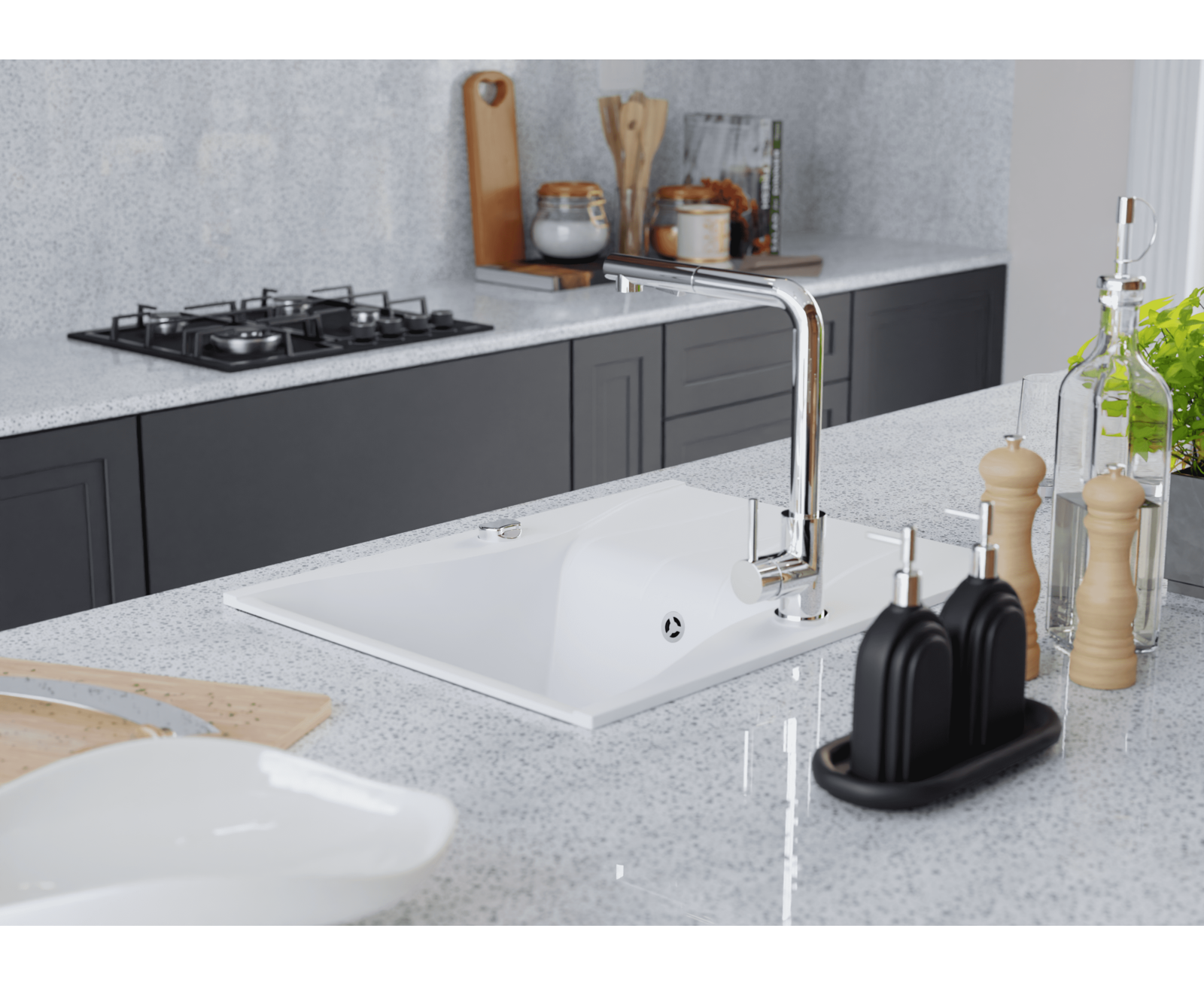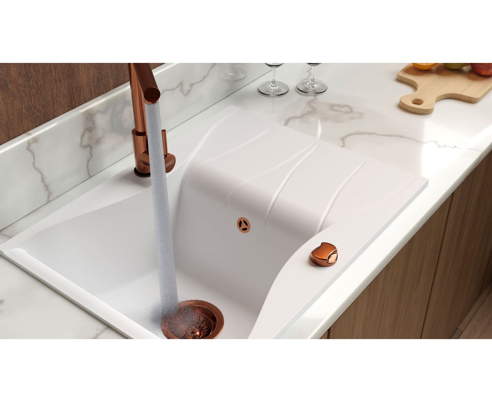 • Uniwersalne wzornictwo – pasuje do blatów laminowanych, konglomeratowych i kamiennych