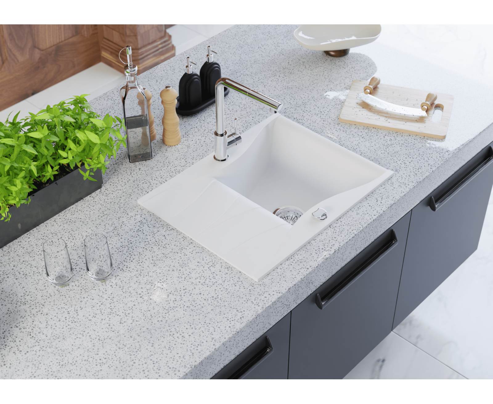 KERNAU KGS O 4565 1B1D Pure White - Zlewozmywak granitowy 1 komorowy z ociekaczem, korek automatyczny.
