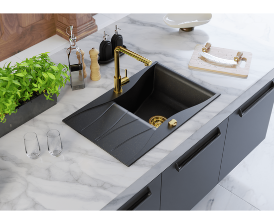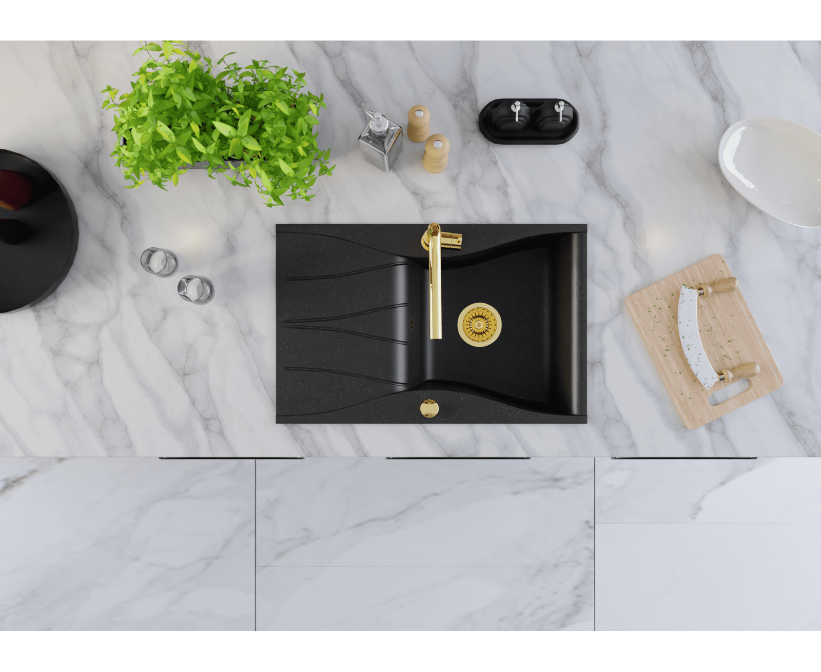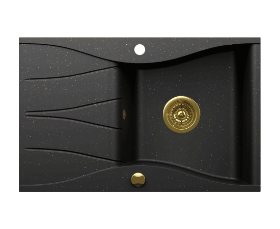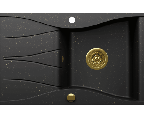 KERNAU KGS O 6078 1B1D Deep Black+ Gold Metallic - Zlewozmywak granitowy 1 komorowy z ociekaczem i drobinkami złota. Korek automatyczny.
