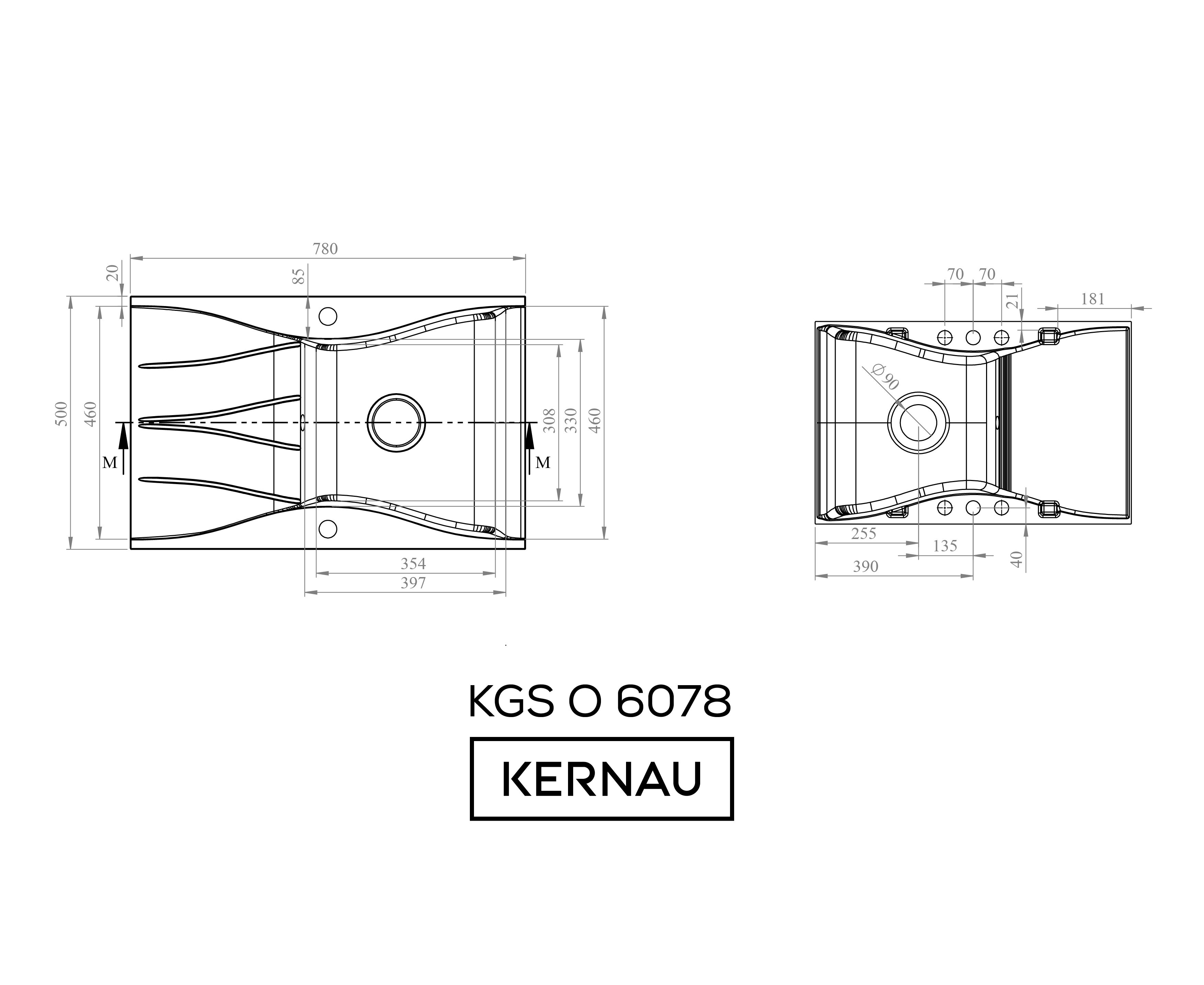 KERNAU KGS O 6078 1B1D Deep Black - Zlewozmywak granitowy 1 komorowy z ociekaczem, korek automatyczny.