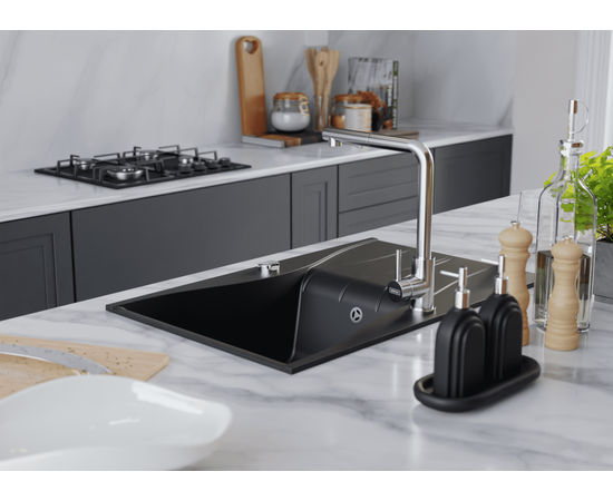 Zlewozmywak granitowy KERNAU KGS O 6078 1B1D Deep Black łączy ponadczasową estetykę z wysoką funkcjonalnością. Wytrzymały kompozyt granitowy cechuje się odpornością na zarysowania, uderzenia i szok termiczny, dzięki czemu świetnie znosi codzienne użytkowanie. Wykończenie Deep Black podkreśla nowoczesny charakter kuchni, a ergonomiczna geometria komory ułatwia pracę z dużymi naczyniami i blachami piekarnika.