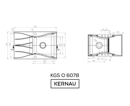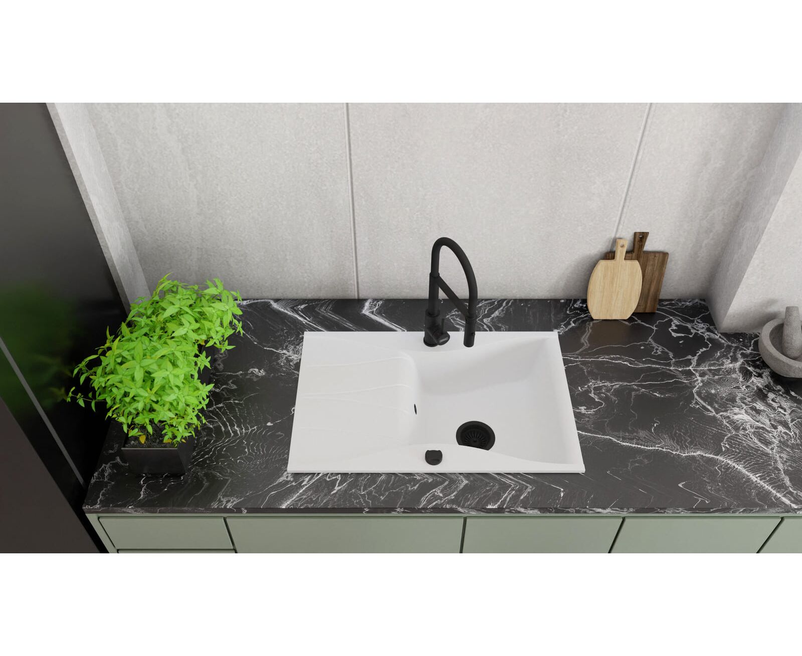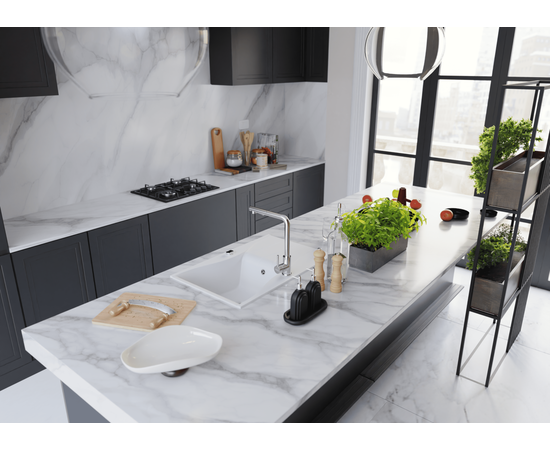 KERNAU KGS O 6078 1B1D Pure White - Zlewozmywak granitowy 1 komorowy z ociekaczem, korek automatyczny.