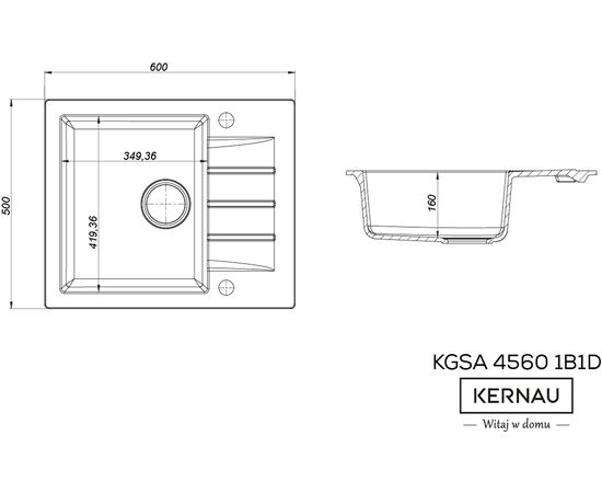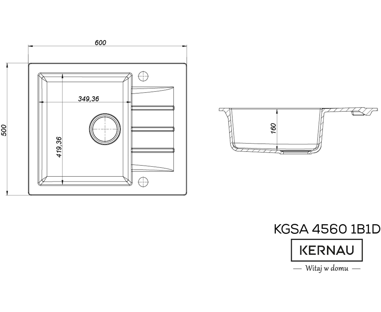 KERNAU Zestaw KGSA 4560 1B1D Graphite+ bateria KWT 29 Elastic Black - Zlewozmywak granitowy 1 komorowy, korek automatyczny + Bateria kuchenna.