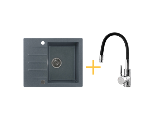 Zestaw zlew granitowy z linii KGS A oraz bateria KWT 29 Elastic Black stanowi stylowe i funkcjonalne połączenie. Zlew granitowy w grafitowym kolorze z ociekaczem oraz bateria z elastyczną wylewką zapewnią ergonomiczną pracę w kuchni. Bateria posiada perlator, który optycznie zwiększa objętość wody poprzez mieszanie je z wodą. Ten zabieg powoduje, że zużywamy mniej wody, co jest korzystne dla naszego portfela i środowiska. Zasięg baterii pozwala na wygodne i dokładne opłukanie całej komory zlewozmywaka. Zlewozmywak Kernau wykonany z komponentów najwyższej jakości posłuży Ci przez długie lata. Jest on odporny na uszkodzenia mechaniczne i łatwy w konserwacji. Został wyposażony w korek automatyczny i syfon oszczędzający miejsce. Można go też bez problemu zamontować z ociekaczem po lewej lub po prawej stronie, co sprawia, że bez problemu dostosujemy go do warunków naszej kuchni. 10-letnia gwarancja na zlew oraz 5-letnia gwarancja na baterię są potwierdzeniem wysokiej jakości zestawu i zapewniają spokój na lata.