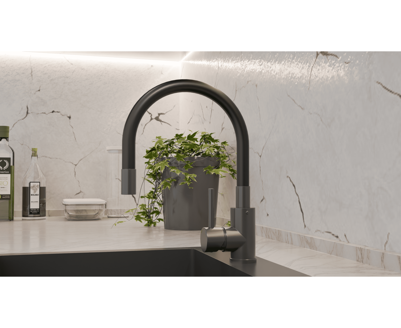 - Spójny design – zlewozmywak i bateria w tym samym wykończeniu