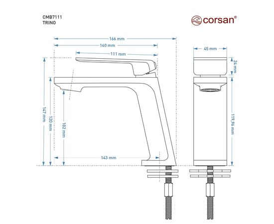CORSAN CMB7111CH - Bateria umywalkowa TRINO CMB7111CH chrom.
