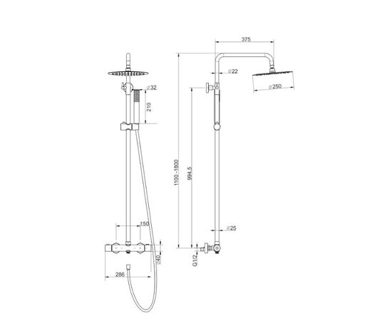 Kolumna prysznicowa LUGO CMN01TBSL Deszczownica 25cm Termostat Stal szczotkowana