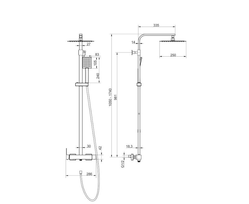 Kolumna prysznicowa ANGO CMN02MBSL Deszczownica 25cm Stal szczotkowana
