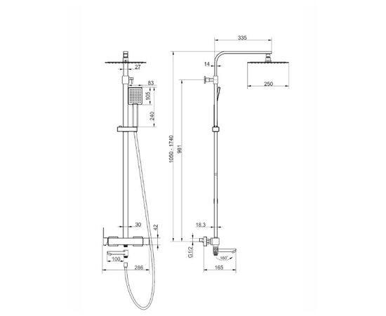 Kolumna prysznicowa ANGO CMN02MBSLW Deszczownica 25cm Wylewka obrotowa Stal szczotkowana