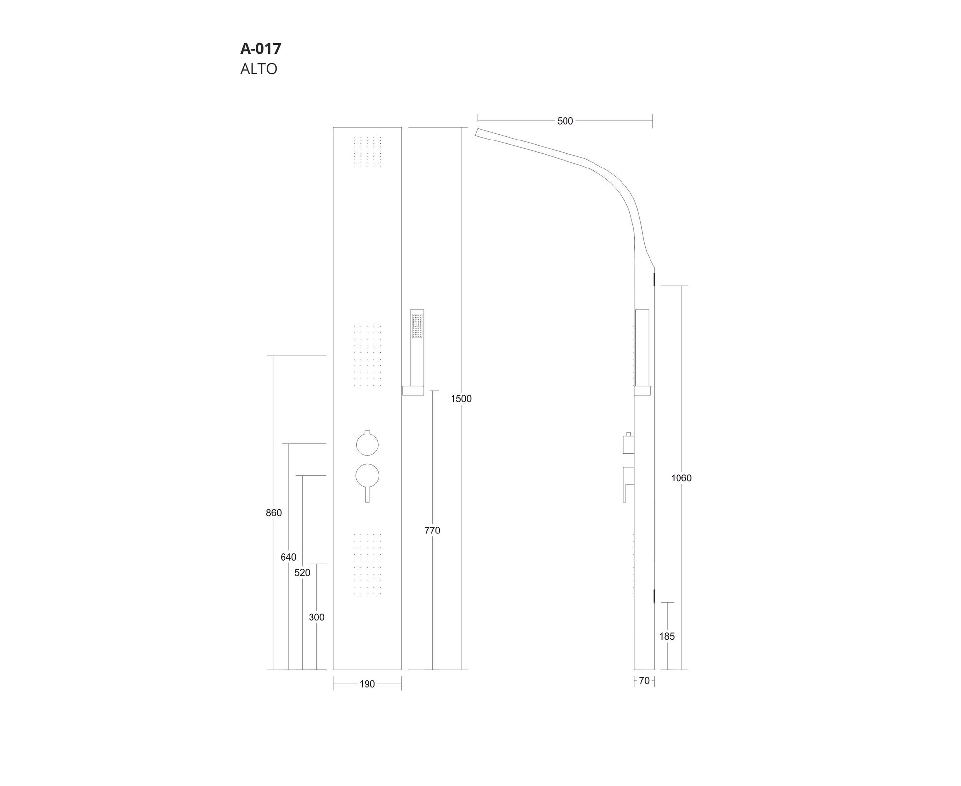 CORSAN A017MWHBL - Panel prysznicowy Corsan Alto A017 biały z czarnym wykończeniem.