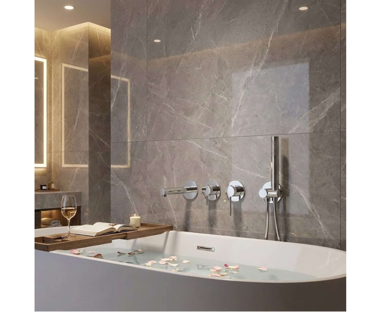 Bateria wannowa ścienna LUGO CMB7554CH z zestawem natryskowym Chrom