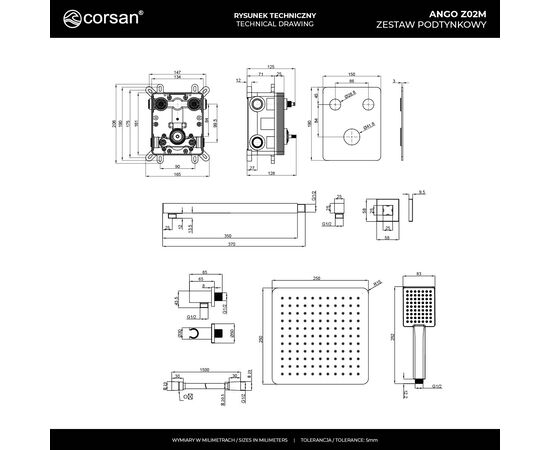 CORSAN Z02MCH - Zestaw prysznicowy podtynkowy ANGO Z02MCH Deszczownica 25cm Mieszacz Słuchawka prysznicowa Chrom.