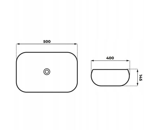 Umywalka nablatowa MONO UC5597BL prostokątna 500x400x145 mm z korkiem czarnym
