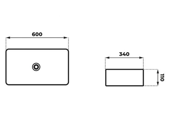 CORSAN UC5610BL - Umywalka nablatowa ANGO UC5610BL prostokątna 600x340x110 mm z korkiem czarnym.