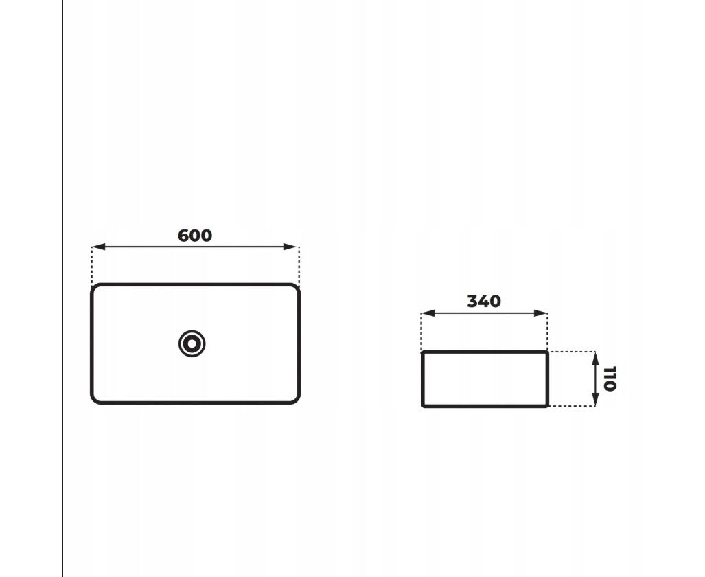 Umywalka nablatowa ANGO UC5610CH prostokątna 600x340x110 mm z korkiem chrom