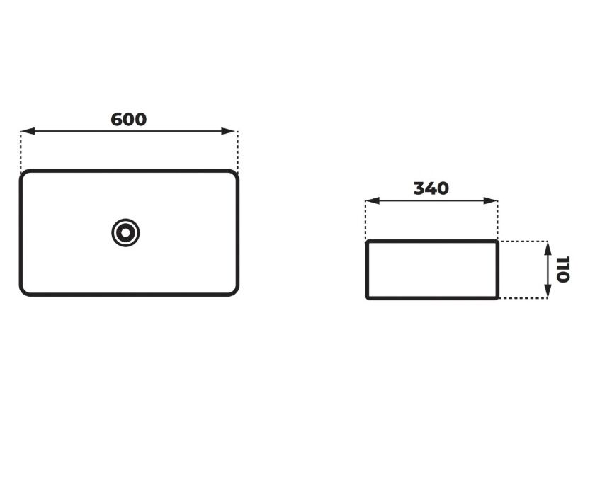 CORSAN UC5610CH - Umywalka nablatowa ANGO UC5610CH prostokątna 600x340x110 mm z korkiem chrom.