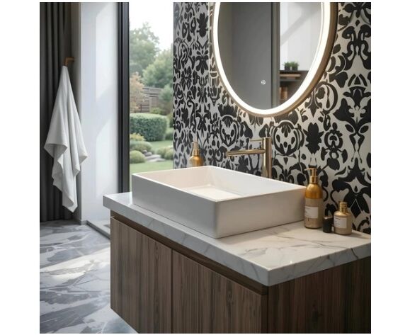 Umywalka nablatowa ANGO UC5610WH prostokątna 600x340x110 mm z korkiem białym