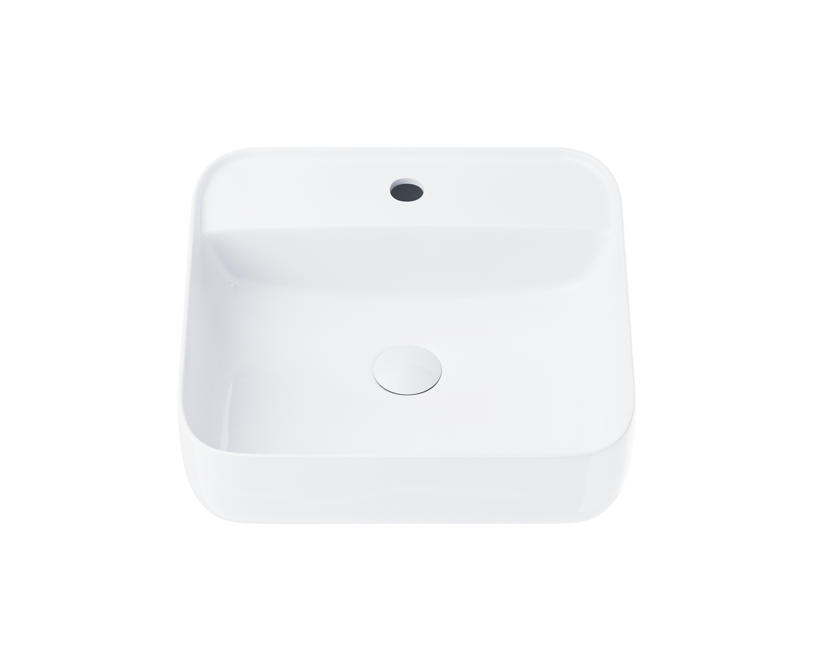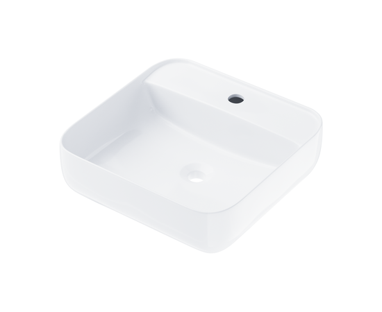 Umywalka nablatowa ANGO UC9902WH kwadratowa 395x395x145 mm z otworem na baterię i korkiem Klik-Klak białym