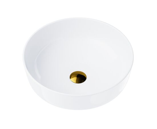 Umywalka nablatowa LUGO UC9988GL okrągła 415x415x135 mm z korkiem Klik-Klak złotym