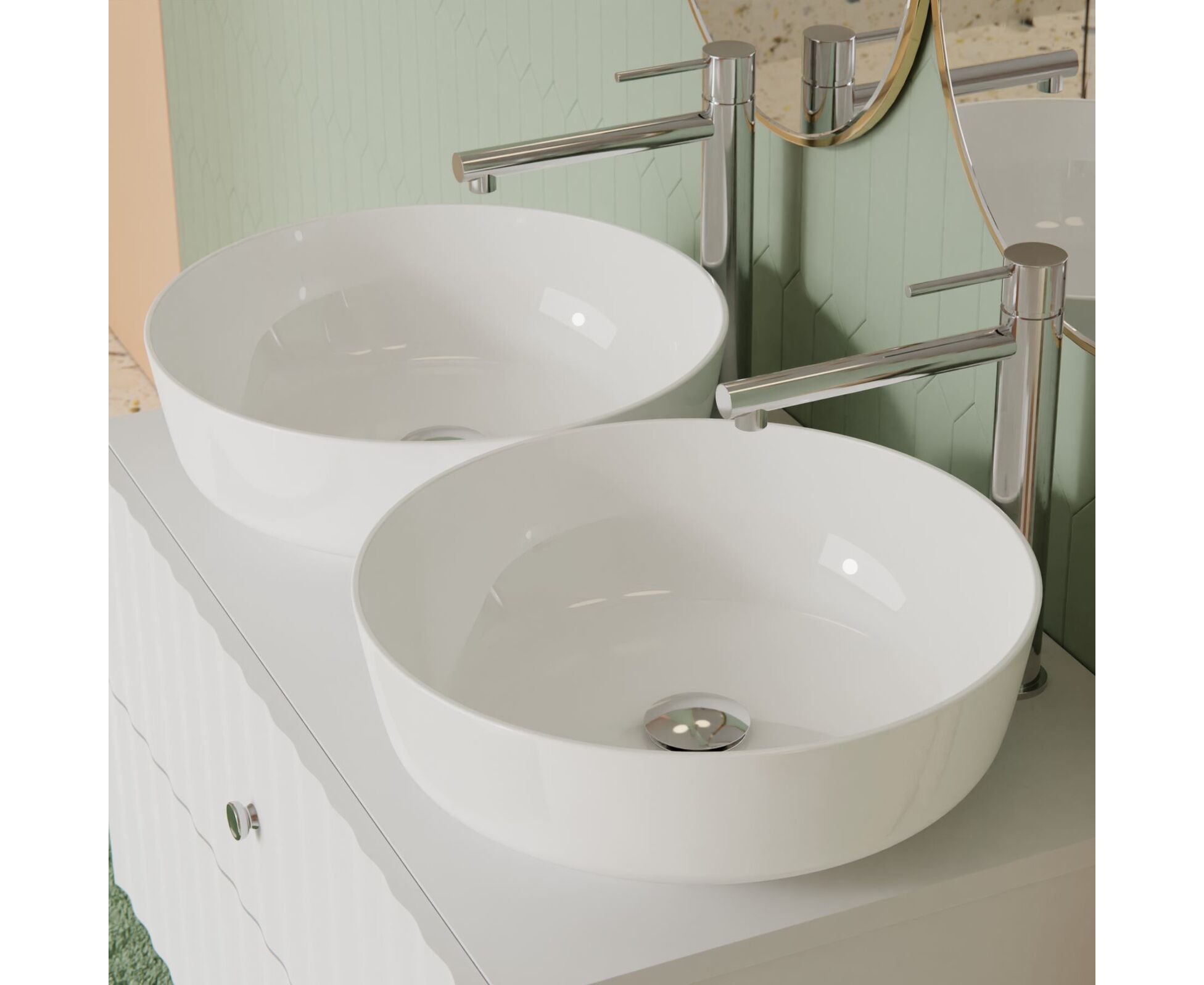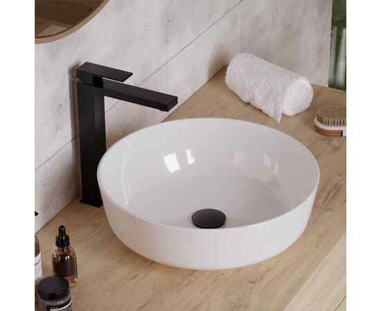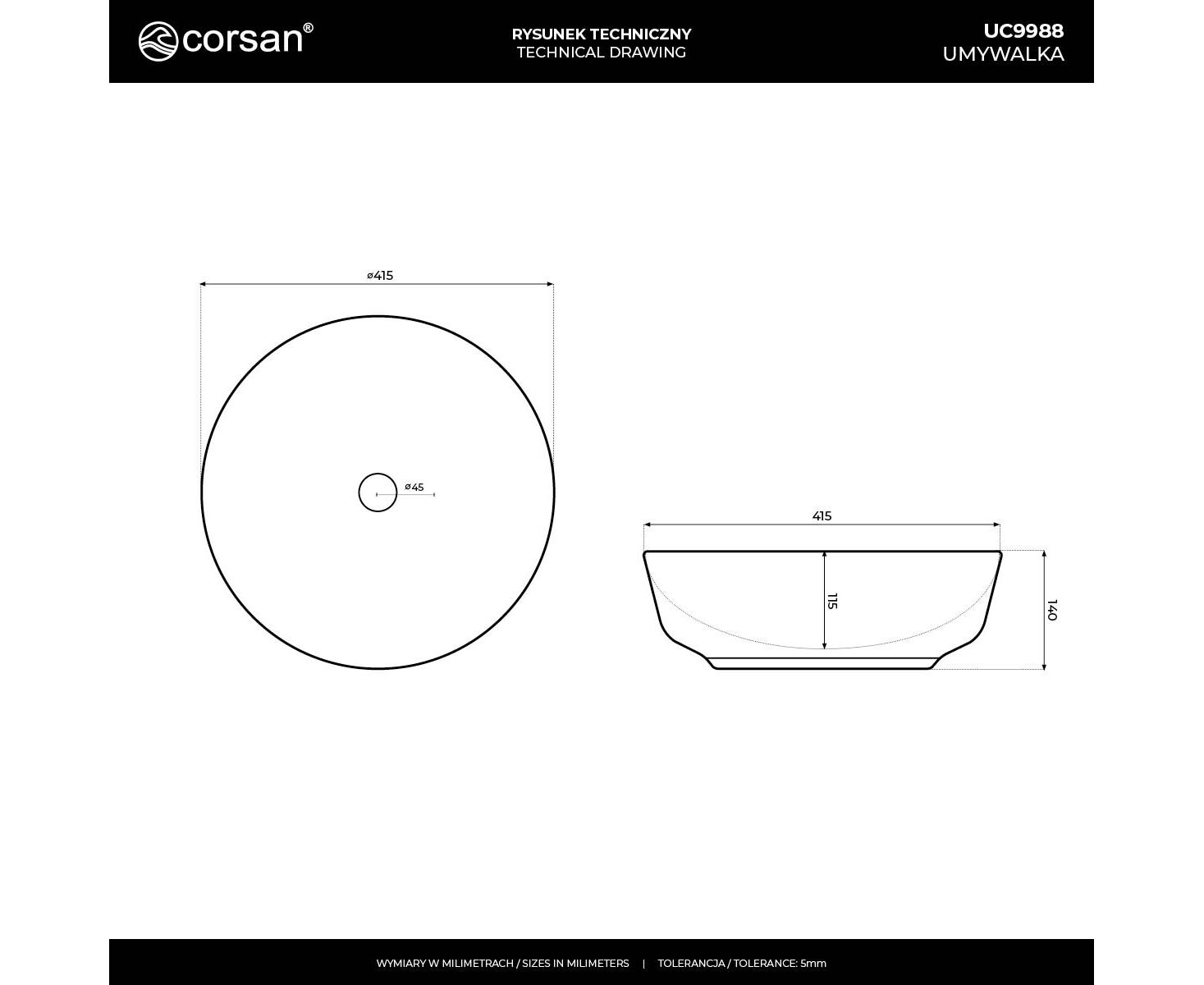 CORSAN UC9988WH - Umywalka nablatowa LUGO UC9988WH okrągła 415x135 mm z korkiem Klik-Klak białym.
