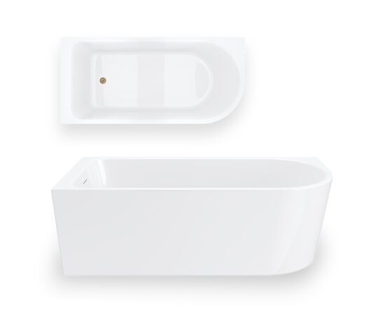 Wanna narożna INVELIA V220LLBGL 160x75 cm Montaż lewstronny Przelew szczelinowy Korek klik klak Złoto szczotkowane