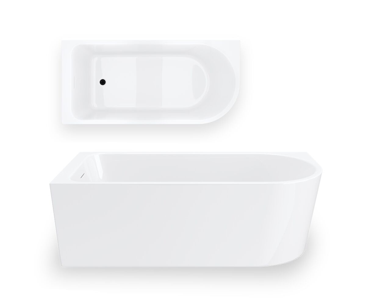 Wanna narożna INVELIA V220LLBL 160x75cm Montaż lewostronny Przelew szczelinowy Korek klik klak Czarny