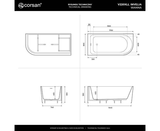 - Montaż wanny: Lewostronny