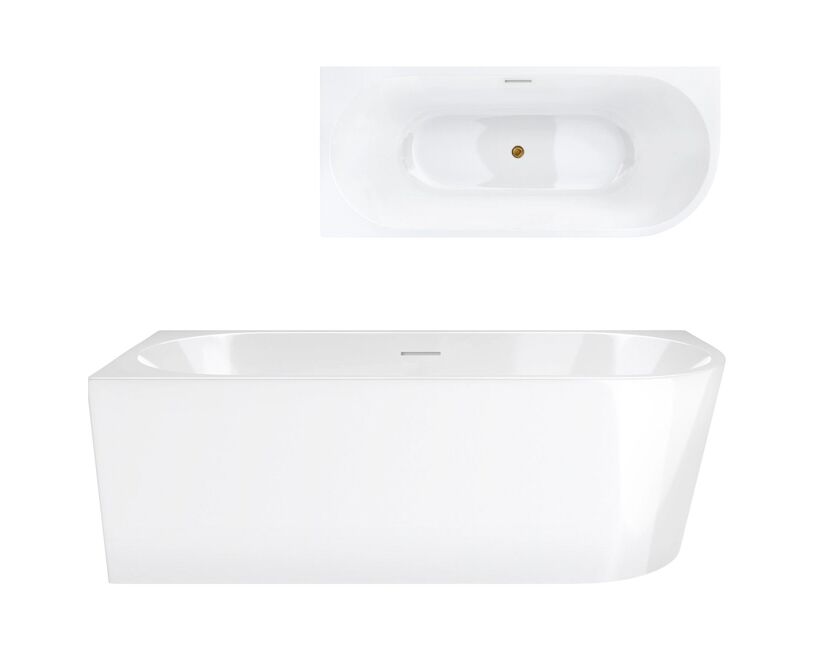 Wanna narożna INTERO V230LLGL 160 cm Montaż lewostronny Przelew szczelinowy Korek klik klak Złoty