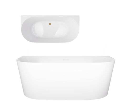 CORSAN V029LSBGL - Wanna przyścienna MONO V029LSBGL Slim 160 cm Przelew szczelinowy Korek klik klak Szczotkowane Złoto.