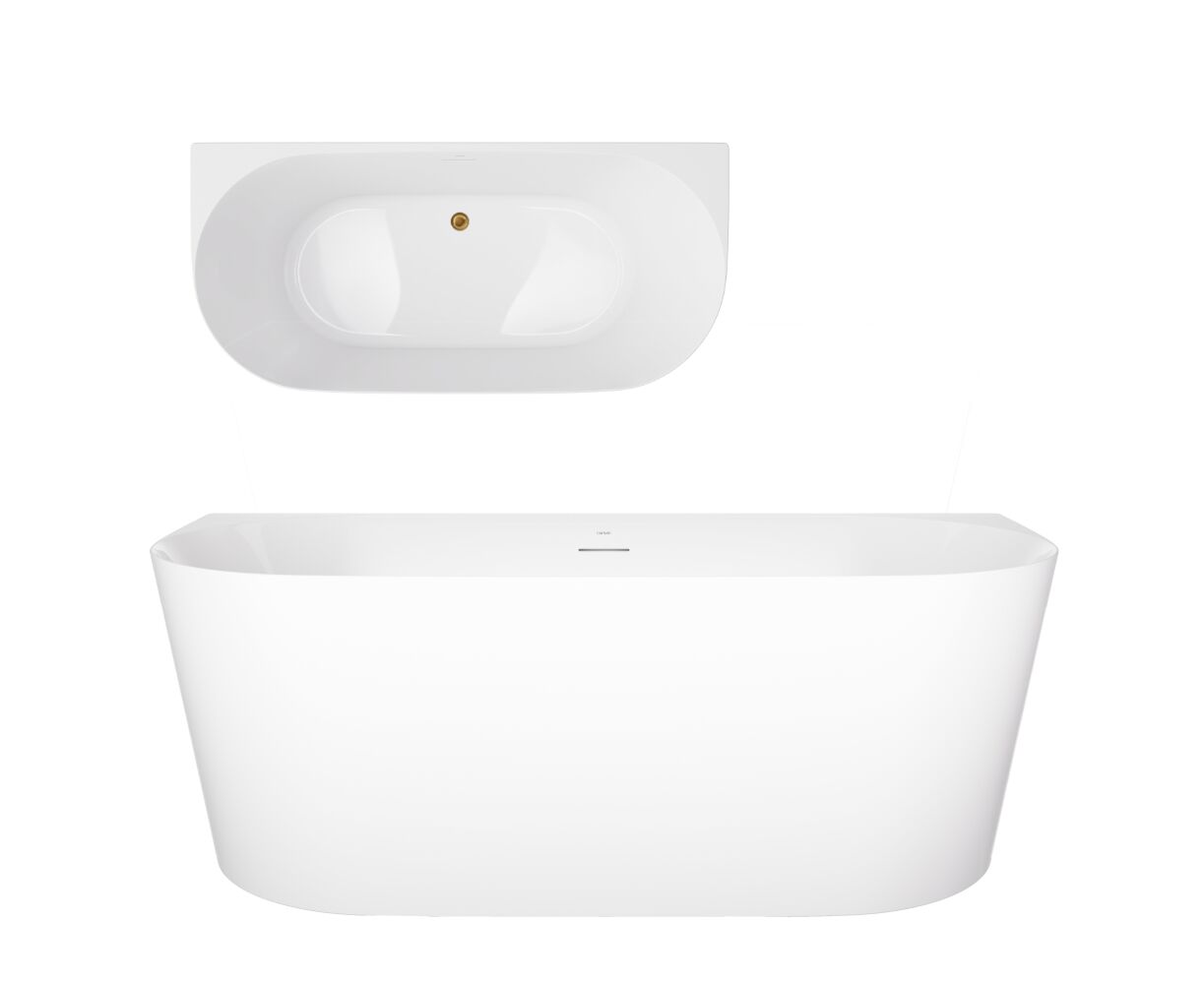 Wanna przyścienna MONO V029LSGL Slim 160 cm Przelew szczelinowy Korek klik klak Złoty
