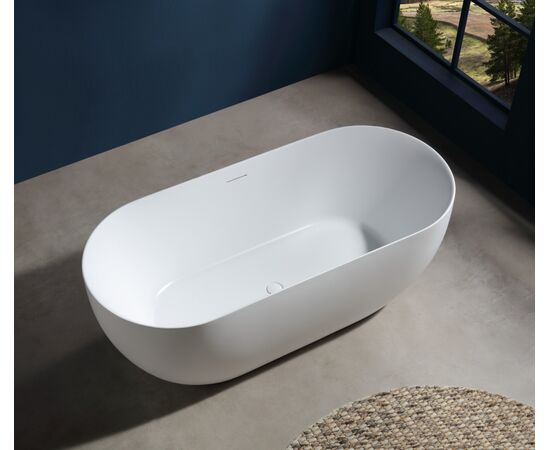 Wanna wolnostojąca OLVENA V041MWH 150 cm Przelew szczelinowy Korek klik-klak Biały